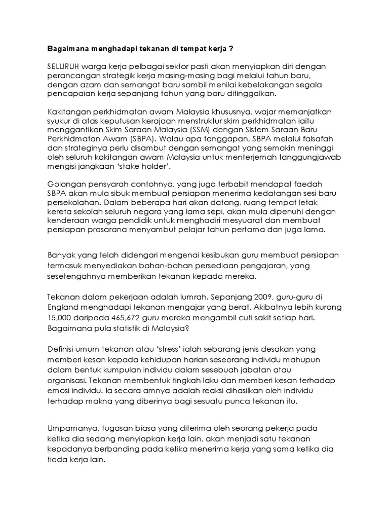 Jenis Tekanan Di Tempat Kerja / Fenomena buli di tempat kerja turut menjadi punca.