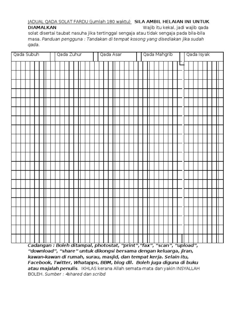 Jadual Qada Solat Fardu Pdf from imgv2-1-f.scribdassets.com Sahaja aku sembahyang fardhu asar empat rakaat (*) tunai kerana allah ta'ala. Nash 01:36:00 fiqh (hukum hakam) dari group usrah solat : Tetapi qada solat ini dikecualikan daripada 5 waktu haram solat. Bagi mereka yang musafir, mereka diharuskan solat qasar dan jamak. Jika saya tertinggal menunaikan solat asar kerana sebab tertentu bolehkan saya menggantikan solat tersebut setelah selesai menunaikan solat fardu asar atau saya perlu menggantikannya pada waktu solat yang lain seperti maghrib atau isyak kerana saya pernah terbaca di dalam kitab. Solat asar terdiri daripada 4 rakaat. Maka tiada waktu yang tertentu untuk mengerjakannya. Waktu asar (عصر) bermula apabila sesuatu bayang objek melebihi kepanjangan sebenar sehingga matahari mula terbenam.